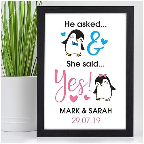 Personalised Penguin Couples Engagement Gifts He Asked She Said Yes Wall Art Print Keepsake For Newly Engaged Couple Fiance Fiancee Him Her Engagement Congratulations Presents For Couples Amazon Co Uk Handmade from images-na.ssl-images-amazon.com 29 items in this article 14 items on sale! Find engagement ornaments, coffee mugs, photo frames, albums, unique keepsakes & other engagement party gift ideas at. All you have to do is provide a couple's engagement date and the creative minds at this amazon shop will.